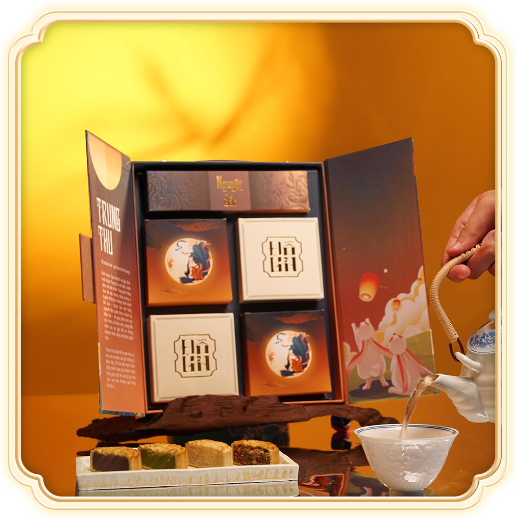 Mỗi hộp Nguyệt Sắc gồm 4 bánh trung thu được lựa chọn kỹ lưỡng, kèm 1 túi trà sen thượng hạng. Sự kết hợp này vừa mang lại trải nghiệm đa vị, vừa tạo không gian thưởng trà dịu nhẹ, giúp người nhận cảm nhận trọn vẹn tinh hoa ẩm thực Hà Nội và văn hóa thưởng quà truyền thống.