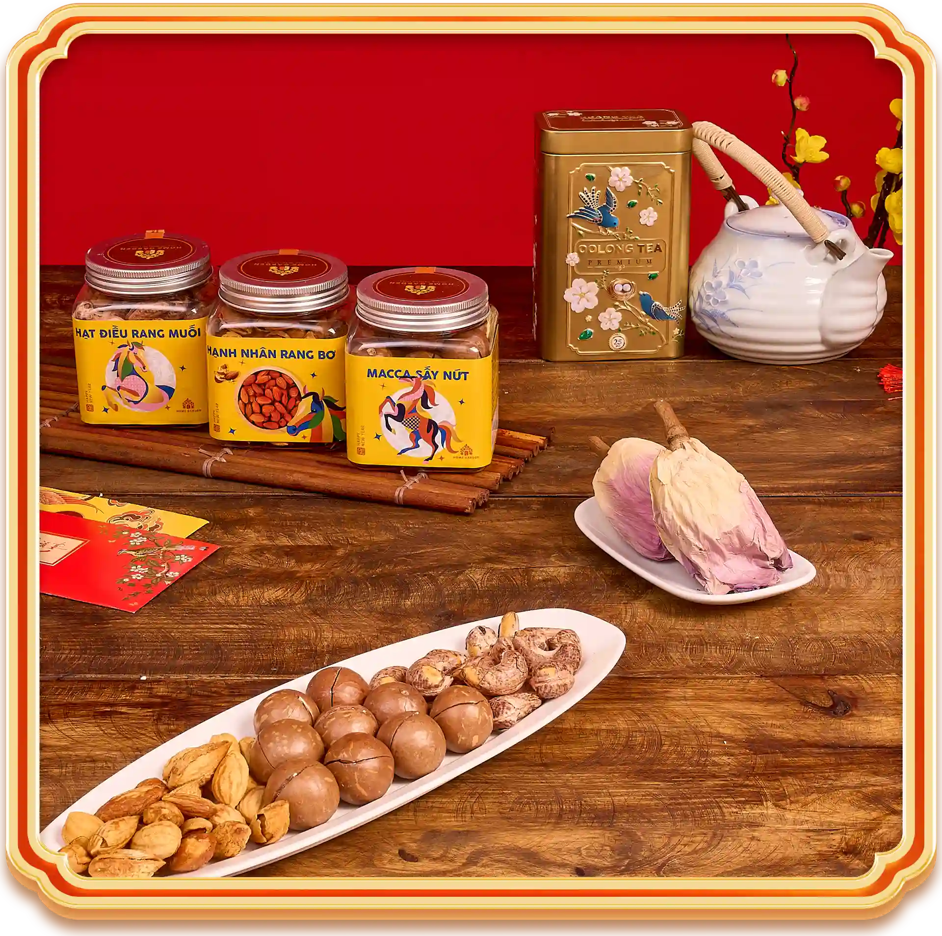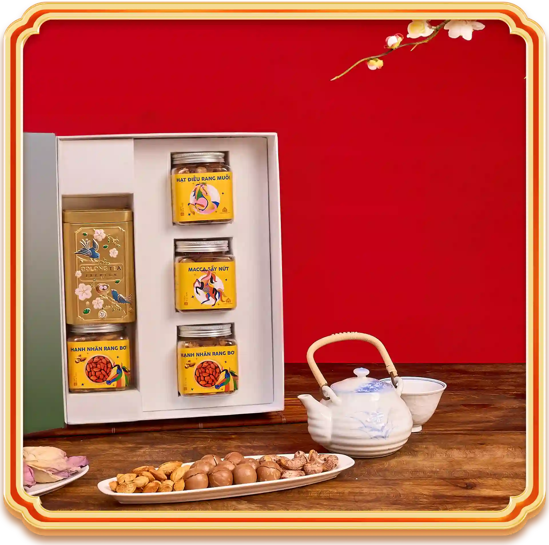 Thành phần: 4 Hũ Hạt Dinh Dưỡng & 1 trà ô long
