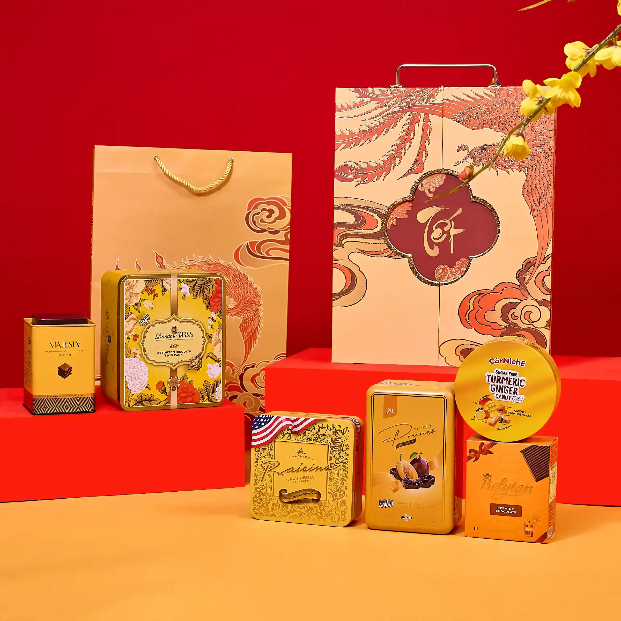 Giá trị của “Cung Đình” nằm ở trải nghiệm “ngự thiện” hiện đại: các vị bánh kẹo, trái cây sấy và trà Oolong được tuyển chọn đa quốc gia, tạo thành một “khay vị” mạch lạc—ngọt béo cân bằng, chua thanh vừa độ, dư vị trà kéo dài. Sự phối vị này giúp hộp quà không chỉ đẹp khi mở nắp mà còn bền trong sử dụng: đãi khách đầu xuân, nhâm nhi bên tách trà, chia sẻ cho nhiều lứa tuổi mà vẫn giữ được cảm giác tinh tế. Tính ứng dụng cao khiến “Cung Đình” trở thành lựa chọn quà Tết an tâm, đủ khác biệt để người nhận nhớ lâu.