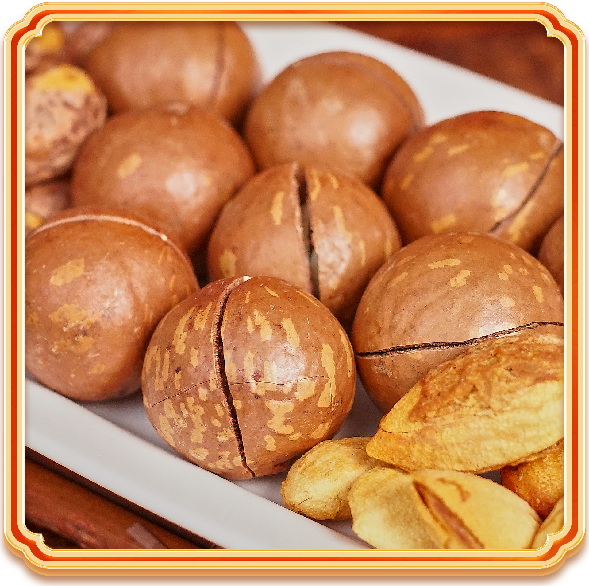 Cấu phần cụ thể theo mặc định gồm một hũ hạnh nhân, một hũ hạt dẻ cười (hoặc thay bằng một hũ hạt điều tùy cấu hình), một hũ xoài sấy dẻo, một hũ hồng sấy dẻo (hoặc mơ sấy dẻo).
